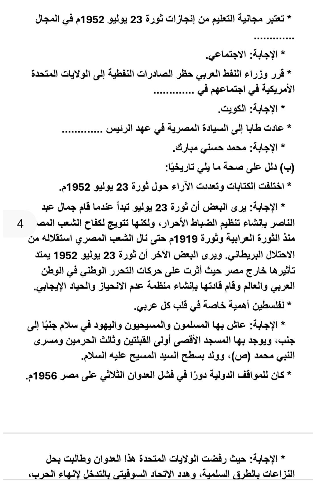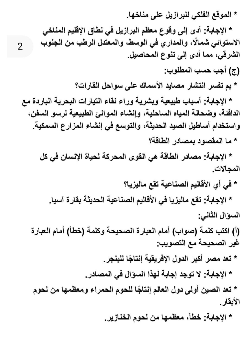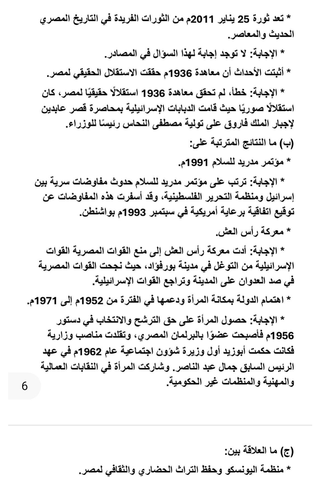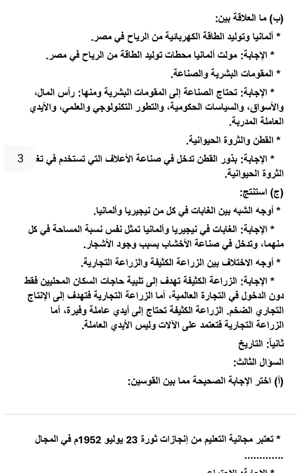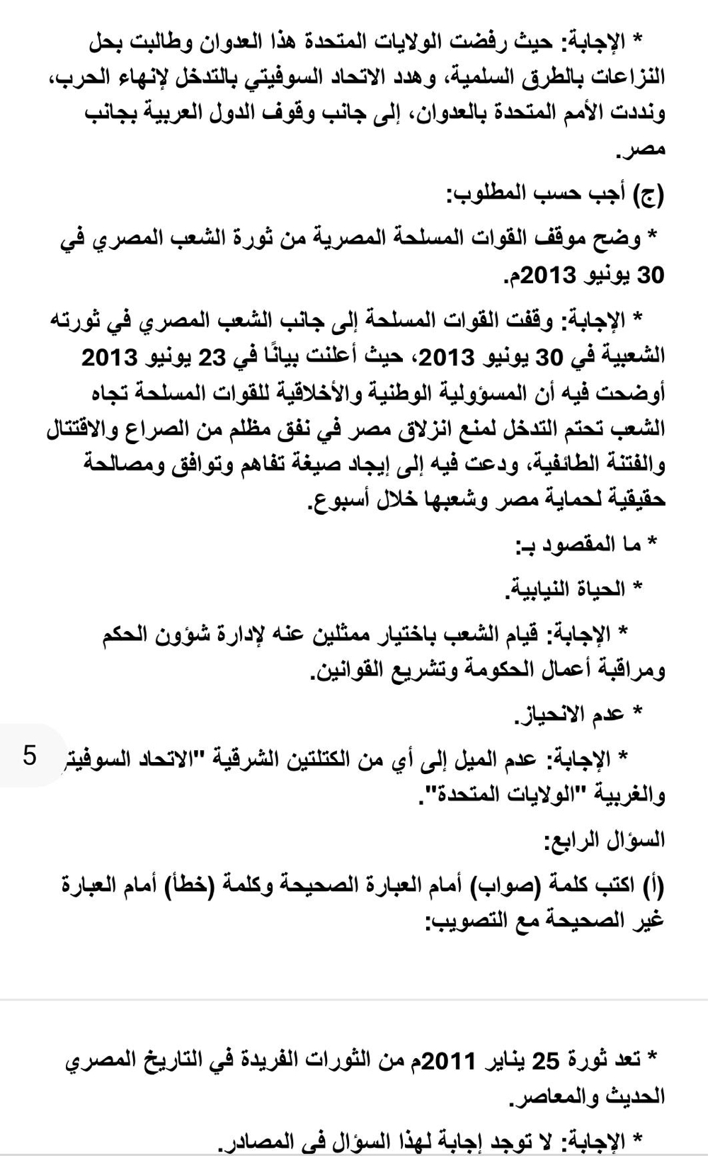 أعد معلمو الدراسات الاجتماعية نموذجًا للإجابة على أسئلة الامتحان، والذي تضمن عددًا من النقاط الهامة التي شملت: