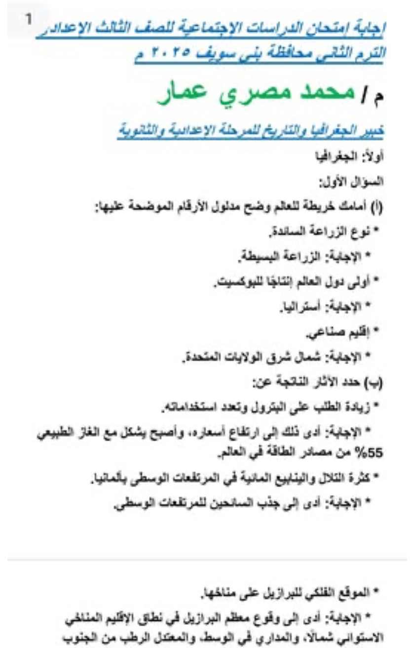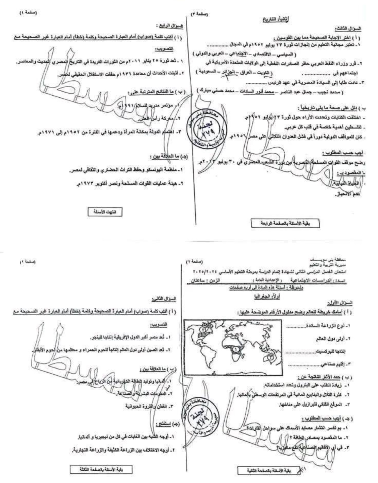 وتم نشر نموذج حل امتحان الدراسات الصف الثالث الإعدادي بمحافظة بني سويف عبر صفحات معلمي المادة على وسائل التواصل الاجتماعي، حيث تم إرفاق صور توضح الإجابات التفصيلية المعتمدة.