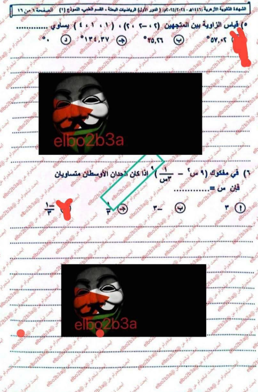 - حل امتحان الرياضيات البحتة الثانوية الأزهرية 2025
