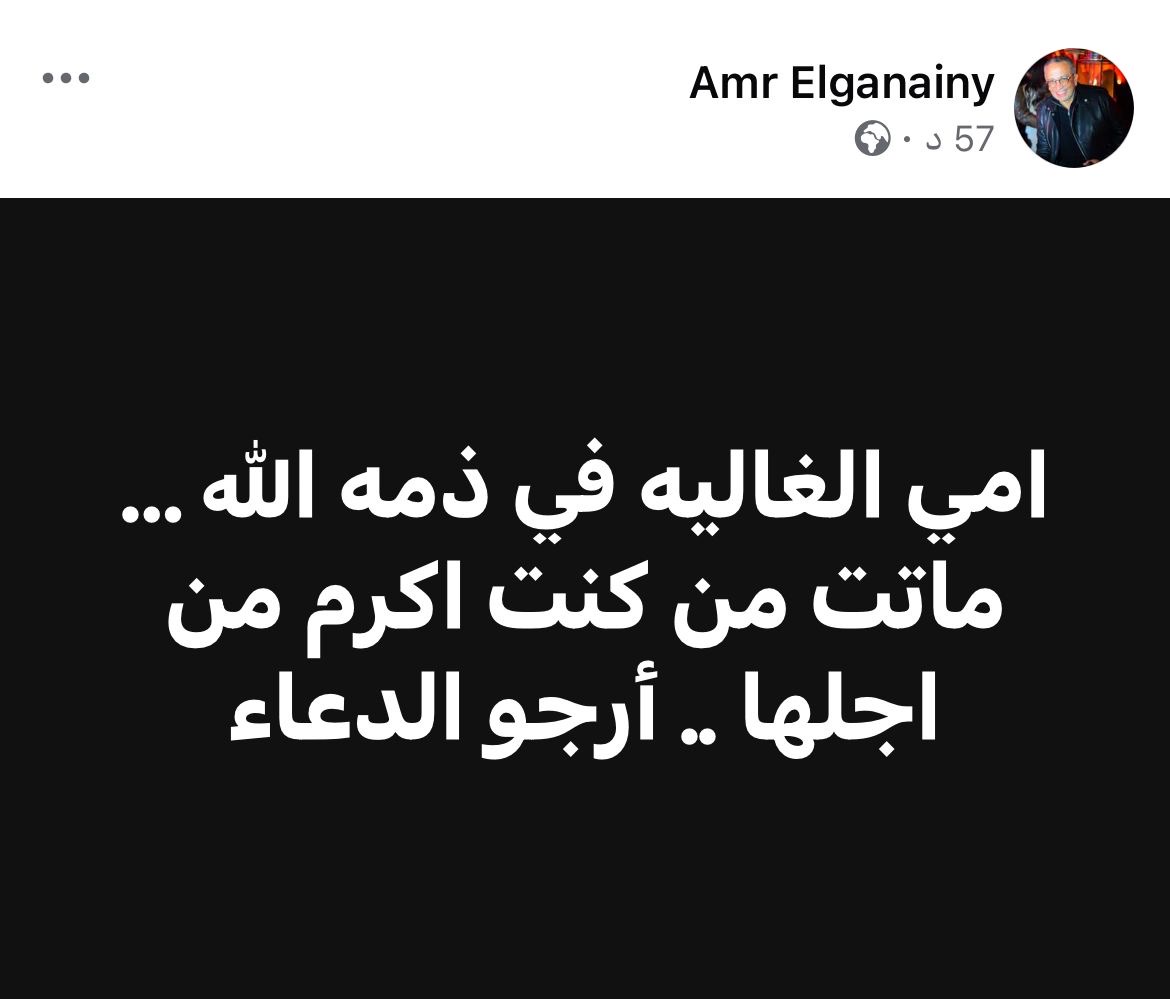 وأعلن الجنايني الخبر عبر حسابه الرسمي على موقع "فيس بوك"، حيث كتب بكلمات مؤثرة: "أمي الغالية في ذمة الله… ماتت من كنت أُكرم من أجلها… أرجو الدعاء.