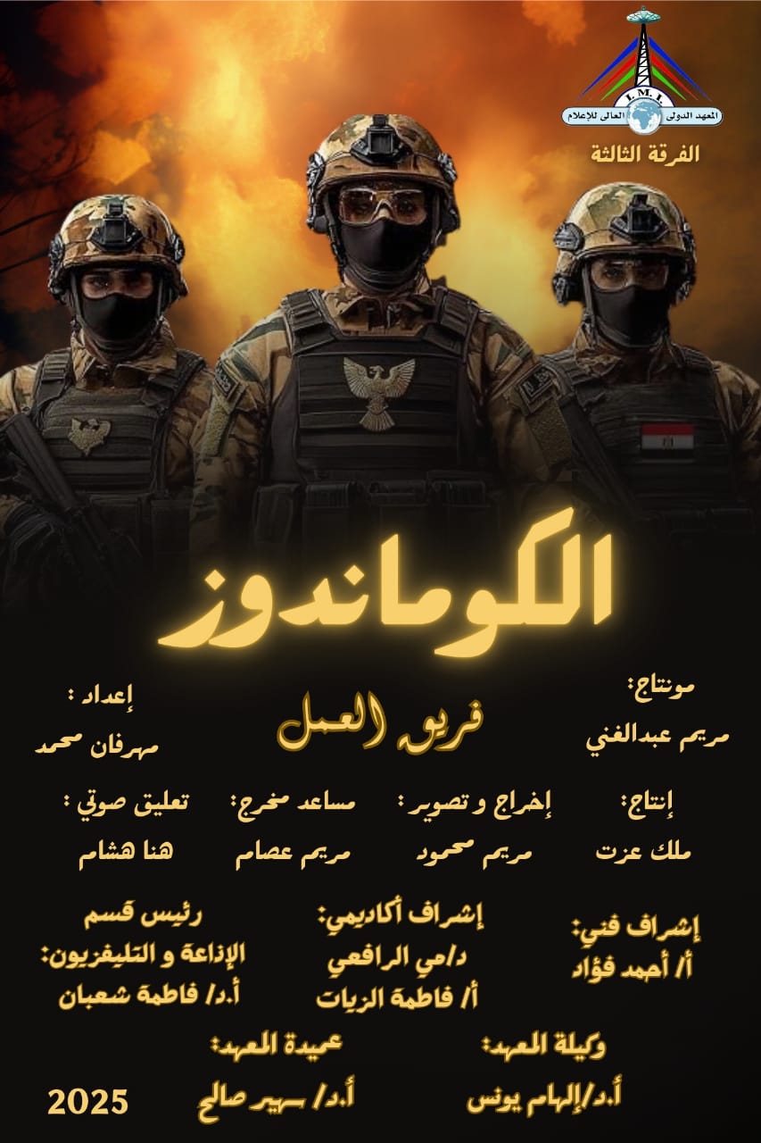 أطلق مجموعة من طلاب الفرقة الثالثة في قسم الإذاعة والتليفزيون بالمعهد الدولي العالي للإعلام بالشروق مشروعًا بعنوان “الكوماندوز” وهو فيلم وثائقي يبرز قوة الجيش المصري على مر العصور من حرب الاستنزاف لمكافحة الإرهاب الى مرحلة البناء و الاستعداد للمستقبل .