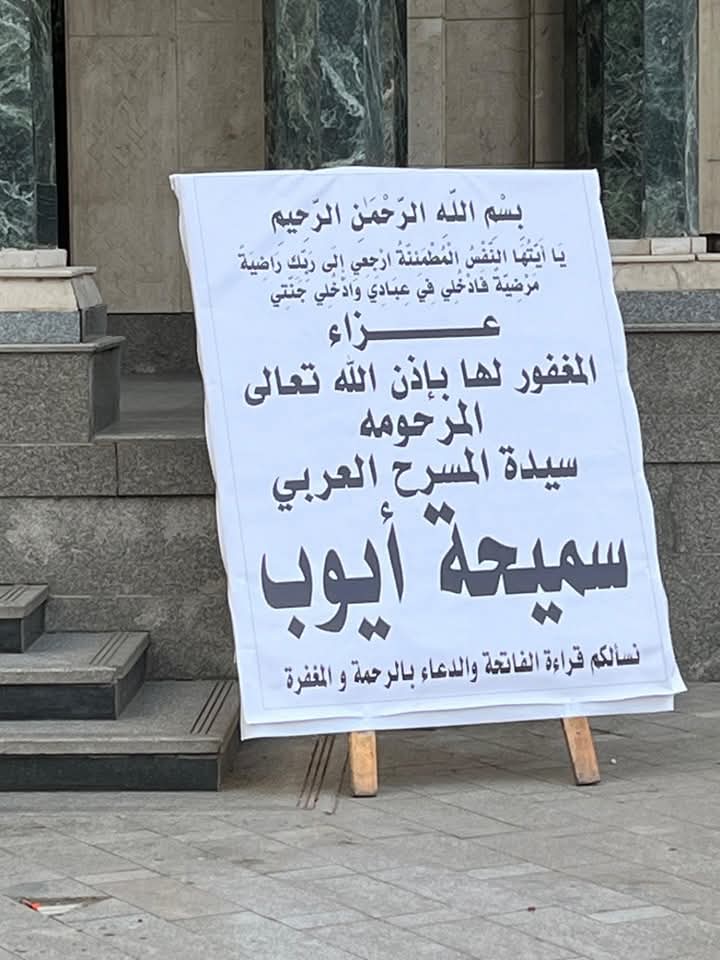 يبدأ بعد قليل عزاء الفنانة القديرة سميحة أيوب بمسجد عمر مكرم وذلك عقب صلاة المغرب.