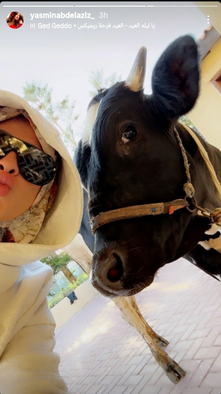 شاركت الفنانة ياسمين عبد العزيز جمهورها ومتابعيها صور جديدة لها بالحجاب خلال ادائها صلاة العيد ونشرت الصور عبر خاصية الأستوري وظهرت وهي ترتدي الحجاب، كما شاركت صورة لها مع الأضحية علبي ريمكس ليلية العيد .