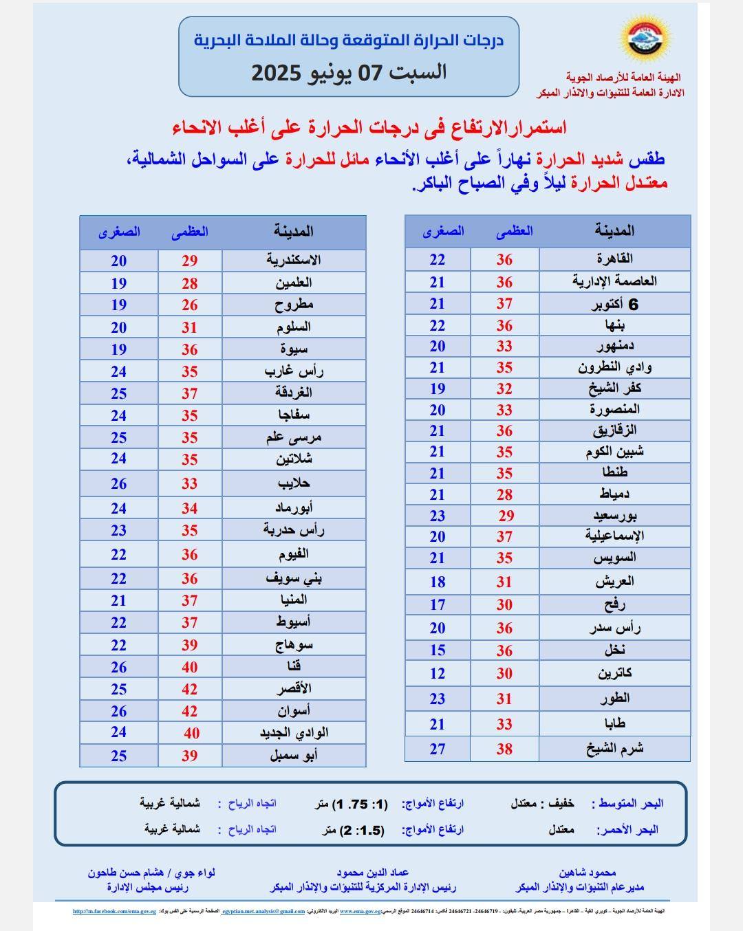 الأرصاد الجوية.. درجات الحرارة اليوم في مصر