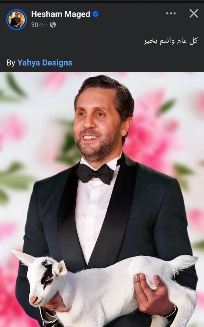 ونشر هشام ماجد عبر حسابه الرسمي على موقع التواصل الاجتماعي الفيسبوك صوره له وهو حامل معزة صغيرة، وكتب: كل عام وانتم بخير".