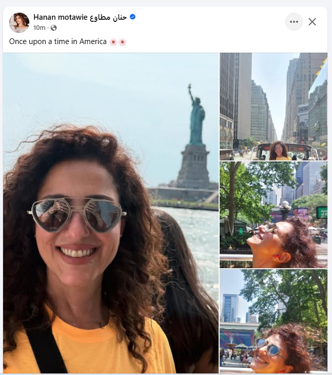 نشرت الفنانة حنان مطاوع، صورها على صفحتها موقع التواصل الاجتماعي الفيسبوك، معلقة: “ ذات مرة في أمريكيا”.