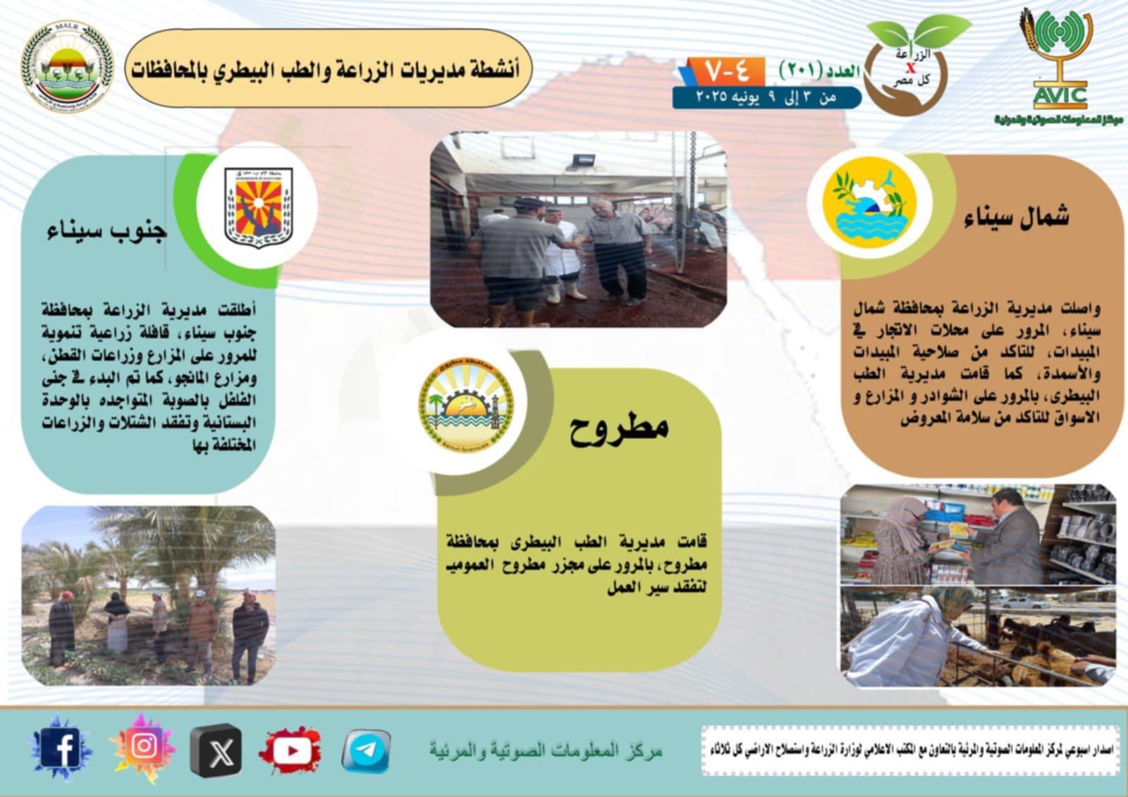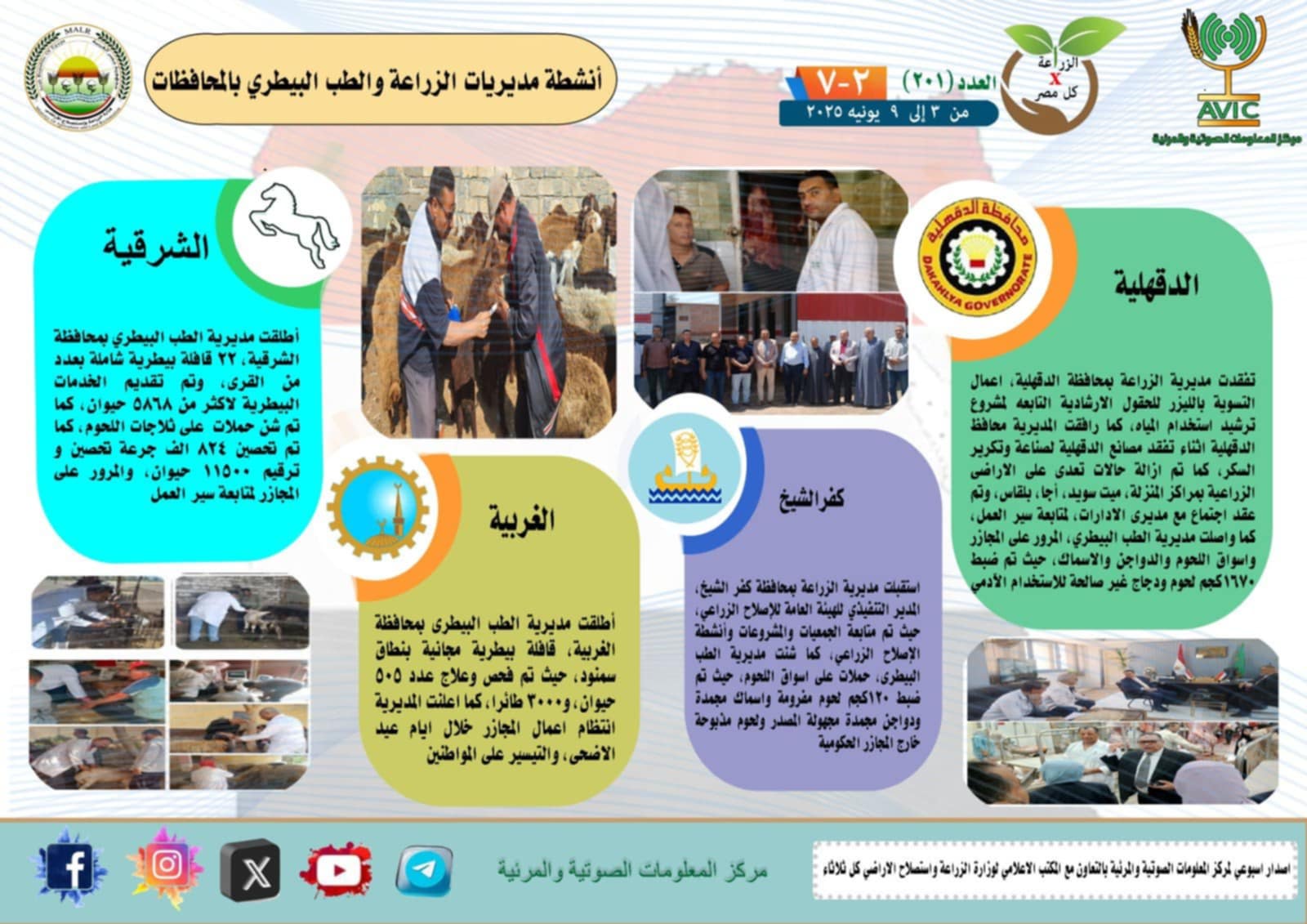 انفوجراف|"الزراعة في كل مصر" العدد رقم 201 .. تعرف على أنشطة وجهود مديريات الزراعة والطب البيطري