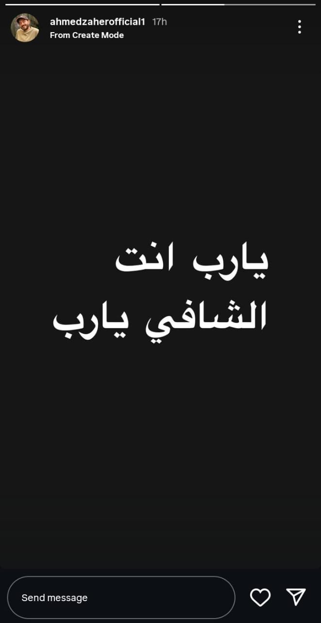 ملك زاهر.. قام الفنان أحمد زاهر بالدعاء لابنته ملك زاهر بعد تعرضها لوعكة صحية نقلت علي آثرها المستشفي، وكتب أحمد زاهر من خلال حسابه الرسمي عبر موقع تبادل الصور والفيديوهات القصيرة “إنستجرام”، عبر خاصية استوري: “يارب انت الشافي”.