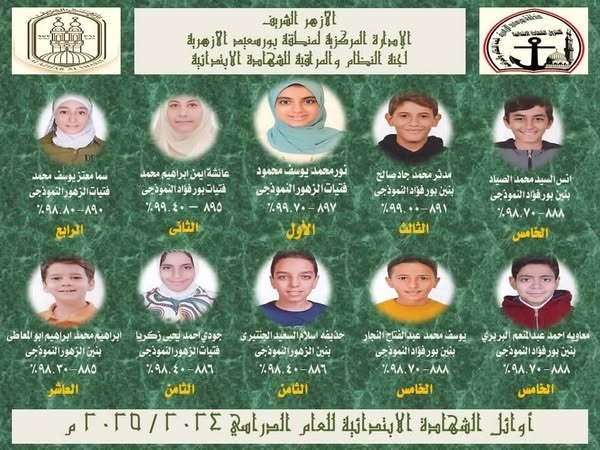 منطقة بورسعيد الأزهرية تعلن أوائل الشهادتين الابتدائية والإعدادية