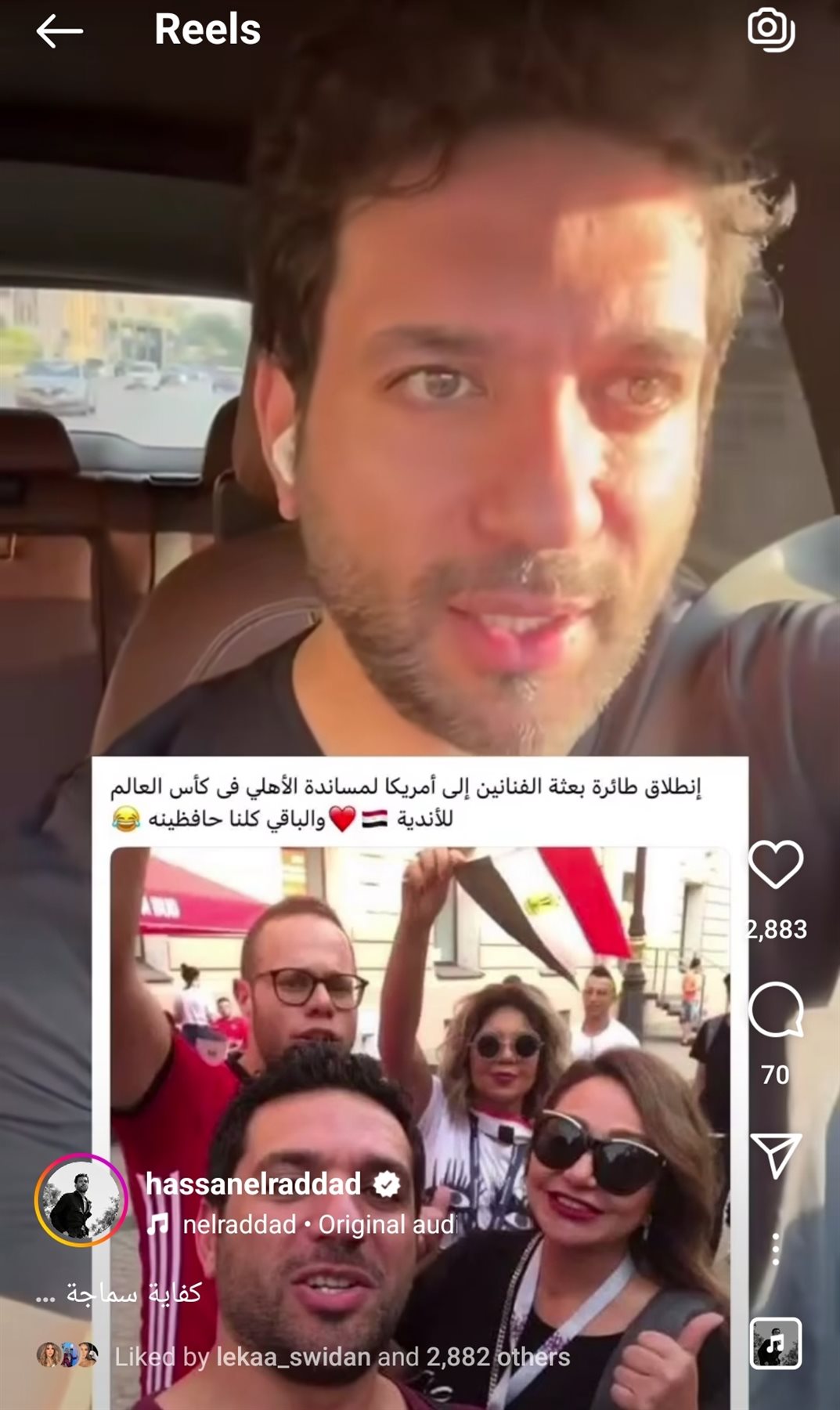 أوضح الفنان حسن الرداد حقيقة الصورة المتداولة عن ظهوره في أمريكا لتشجيع الأهلي في كأس العالم للأندية، وذلك عبر فيديو على موقع التواصل الاجتماعي لتبادل الصور والفيديوهات الانستجرام.