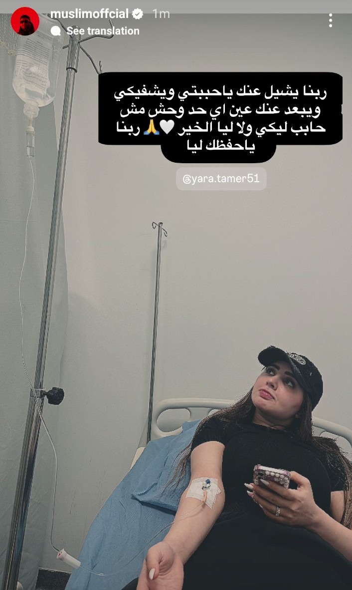 ونشر مسلم عبر خاصية الاستوري على موقع التواصل الاجتماعي لتبادل الصور والفيديوهات الانستجرام: ربنا يشيل عنك ويشفيكي ويبعد عنك عين أي حد وحش مش حابب لينا الخير.