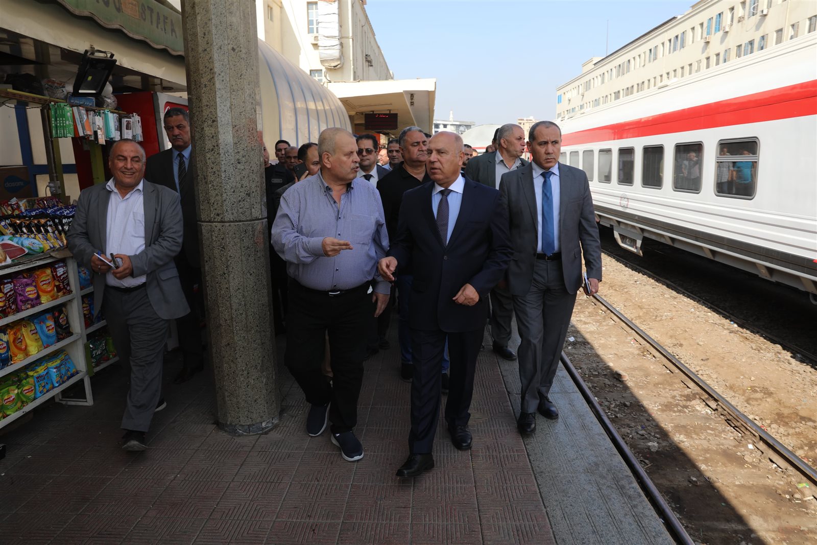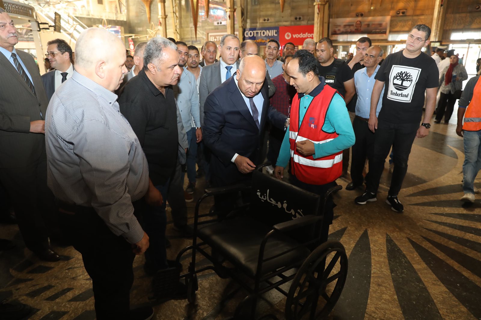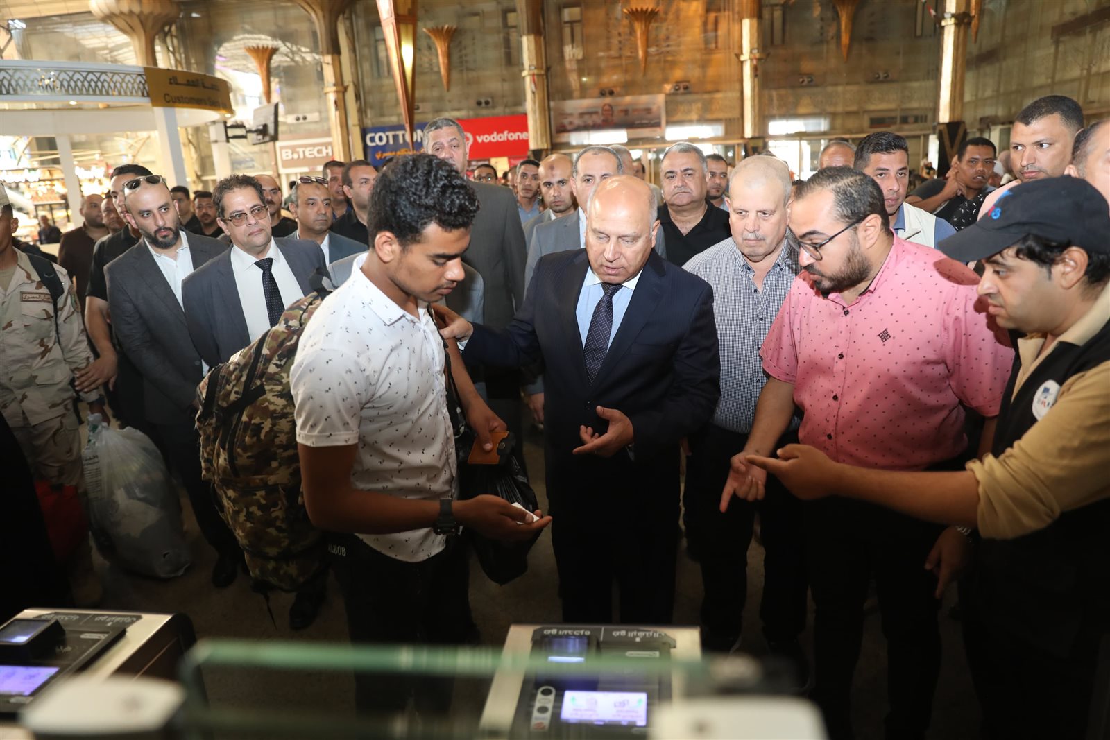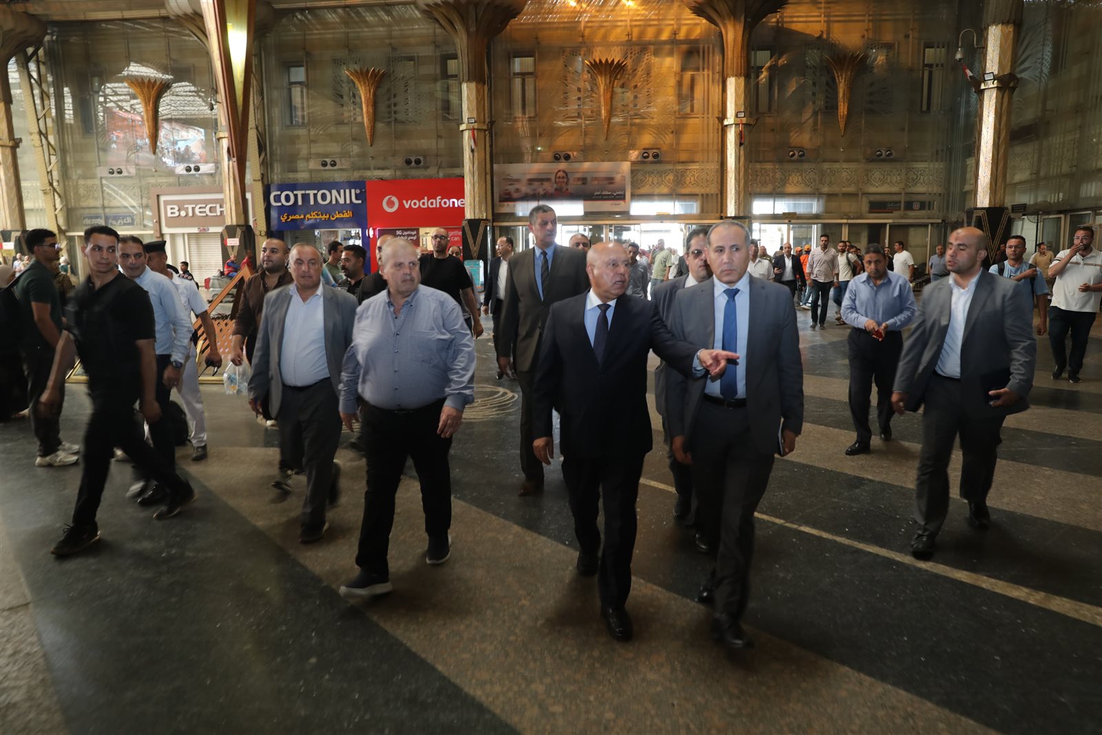 بدأت الجولة بتفقد الوزير الساحة الخارجية وشبابيك التذاكر والمول التجاري و بهو المحطة والارصفة بالإضافة إلى بوابات التذاكر الالكترونية التي تساهم في عدم دخول الركاب للأرصفة بدون تذكرة، وكذلك انتشار مسئولي الصيانة الخاصة بالبوابات على مدار الساعة لإصلاح أي اعطال مفاجئة واتخاذ كافة التدابير التي تكفل عدم حدوث زحام بالأرصفة وقيام المحطات التي يتوافر بها إذاعة داخلية بإعلام الجمهور بشكل مستمر بمواعيد قيام القطارات بمختلف الخطوط وأرقام الأرصفة التي يتواجد بها كل قطار بالإضافة إلى القيام بأعمال نظافة القطارات والمحطات على مدار الساعة .