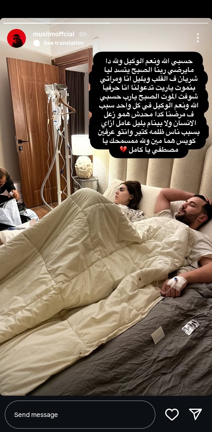 يذكر، أعلنت البلوجر يار تامر زوجة المطرب مسلم عن تعرض زوجها لوعكة صحية نقل علي آثرها إلي المستشفي، وذلك بعد ساعات فقط من نقلها للمستشفي أيضًا بعد تعرضها لوعكة صحية.