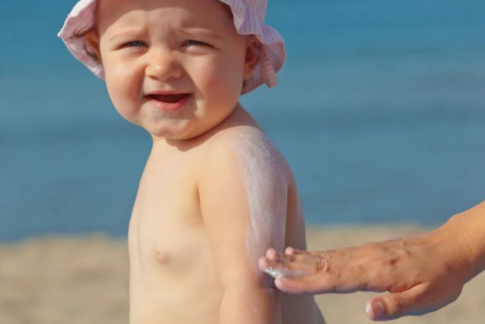 استخدام كريم مخصص للأطفال وذا عنصر واقي من الشمس ، والتأكد من جودة الكريم وأنه يحمي من أشعة الشمس فوق البنفسجية القريبة والبعيدة، والحرص على وضعه في كل مرة يخرج فيها طفلك من الماء