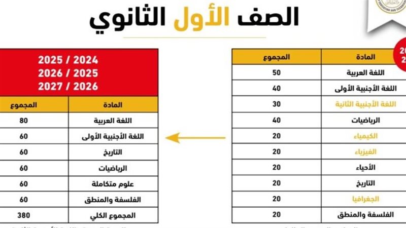 توزيع درجات مواد امتحانات ثانوية عامة 2025