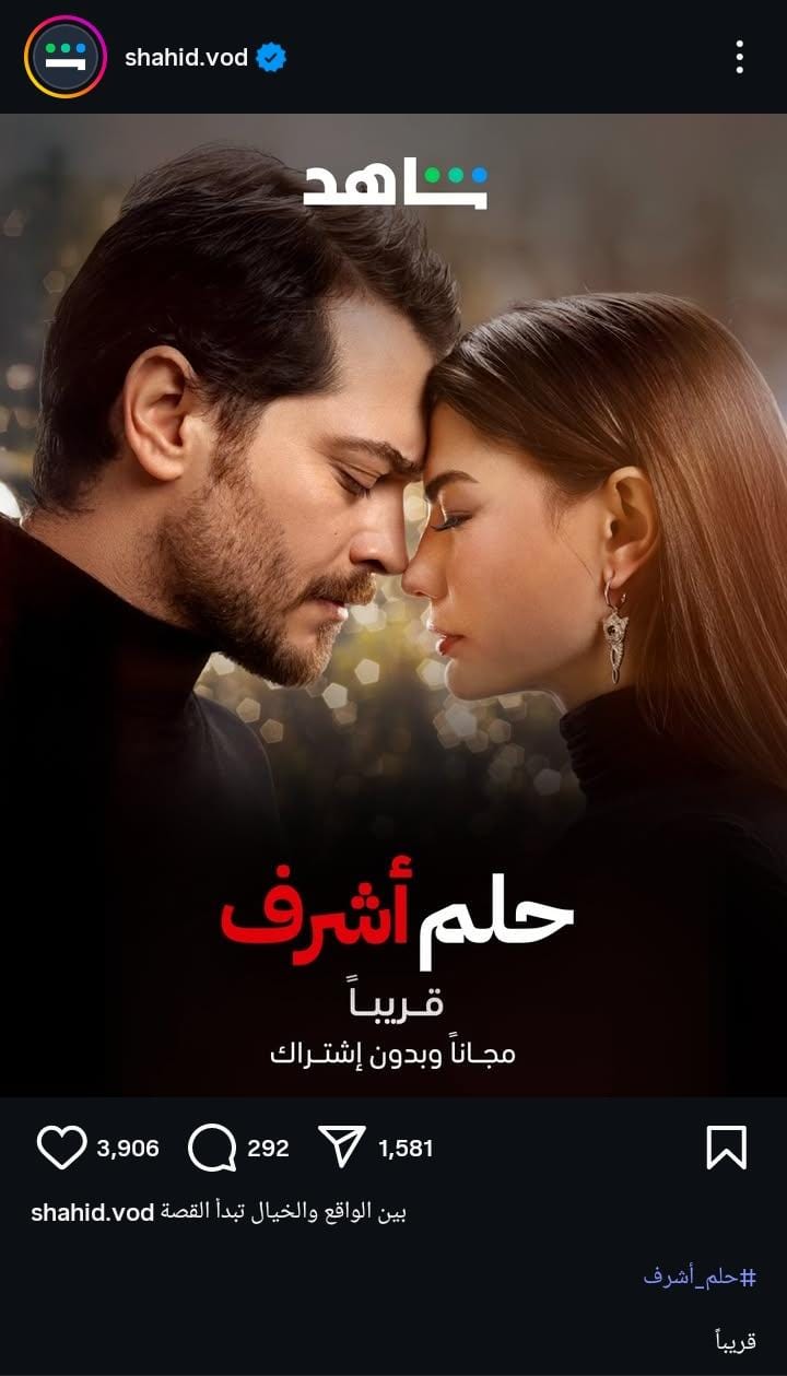 مسلسل حلم أشرف.. وسط النجاح الهائل الذي حققه المسلسل التركي حلم أشرف بطولة الثنائي ديميت أوزديمير و تشاتاي أولوسوي في مصر وتركيا، قررت منصة شاهد الرقمية عرض المسلسل حصريًا علي شاشتها مجانًا دون إشتراك.