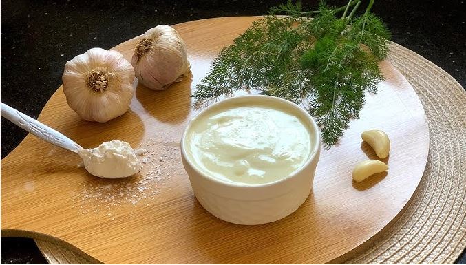 نحضر الخلاط الكهربائي ونضع به بياض البيض والثوم وملح الليمون، ويتم خفق المكونات جيدا معا.