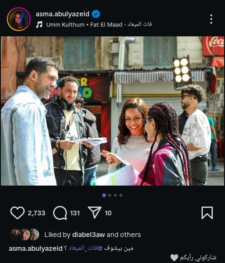 وشاركت أسماء أبو اليزيد جمهورها صور جديدة من كواليس تصوير مسلسل فات الميعاد، وذلك من خلال حسابها الرسمي عبر موقع تبادل الصور والفيديوهات القصيرة “إنستجرام”، وعلقت: “مين بيشوف فات الميعاد؟.. شاركوني رأيكم”.