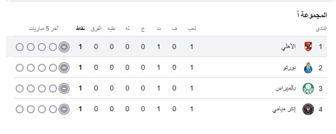 ترتيب مجموعة الأهلي في كأس العالم للأندية 2025