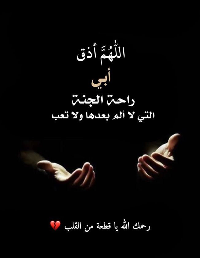 يا رب ارحم أبي الذي ترك الحياة وما زال قلبي ينبض باسمه، يا الله اغفر له واجمعنا به في جنات النعيم، اللّهم اجعل أبي في مكانة تُخفف عنه وحشة القبر وأبدل حزني على فقده بفرح بأنك معه برحمتك ورضاك.