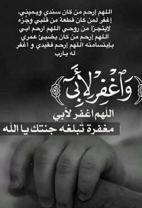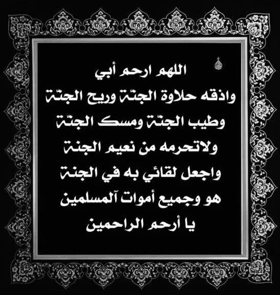 اللّهم اغفر لأبي الذي انتقل إلى جوارك وارحمه رحمةً واسعة إنّك أنت الغفور الرحيم، يا رب هو أصبح الآن في ضيافتك وانت اكرم الأكرمين وأرحم الراحمين فاللهم اجعل إحسانك إليه لا ينقطع وكرمك عليه دائمًا يفوق توقعاتنا.