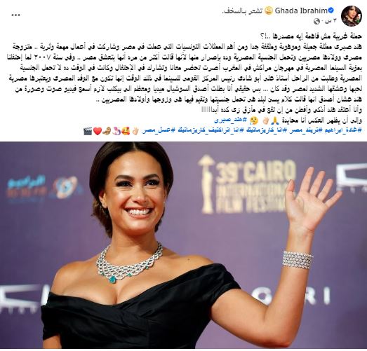 وكتبت غادة إبراهيم عبر صفحتها الرسمية "فيس بوك" " حملة غريبة مش فاهمة إيه مصدرها ..!؟ هند صبرى ممثلة جميلة وموهوبة ومثقفة جدا ومن أهم الممثلات التونسيات التى عملت في مصر وشاركت في أعمال مهمة وثرية .. متزوجة مصرى وولادها مصريين وتحمل الجنسية المصرية وده بإصرار منها لأنها قالت أكتر من مره أنها بتعشق مصر ..