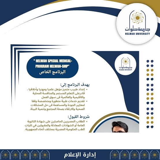 تنسيق الجامعات 2025 2026 يشهد فتح باب القبول ببرنامج طبي خاص في حلوان….برنامج طبي جديد في كلية الطب بحلوان أعلنت كلية الطب بجامعة حلوان عن فتح باب التقديم في برنامجها الطبي الخاص (Helwan Special Medical Program)، ضمن تنسيق الجامعات 2025 2026، وذلك تحت رعاية الدكتور السيد قنديل، رئيس الجامعة، وبإشراف الدكتورة رشا رفاعي، عميد الكلية، والدكتور محمد عبد اللطيف، منسق البرنامج.