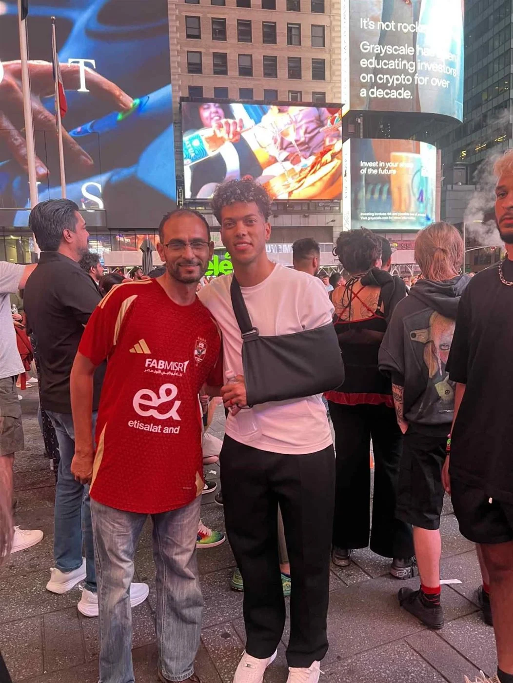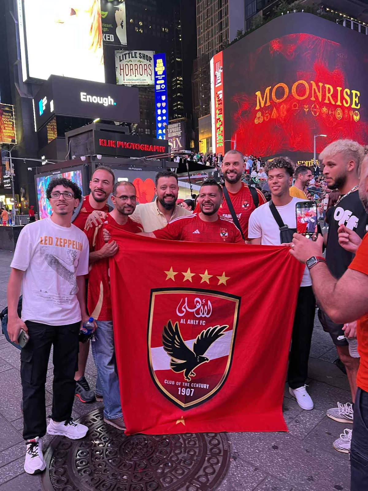 ظهر إمام عاشور، لاعب وسط النادي الأهلي، وسط جماهير الفريق في ساحة "تايمز سكوير" بمدينة نيوجيرسي الأمريكية، قبل ساعات من المواجهة المرتقبة أمام بالميراس البرازيلي، ضمن منافسات الجولة الثانية من دور المجموعات في كأس العالم للأندية 2025.