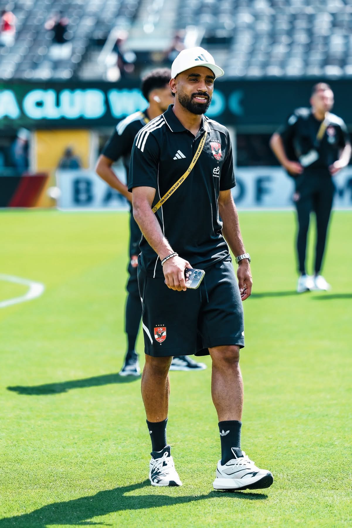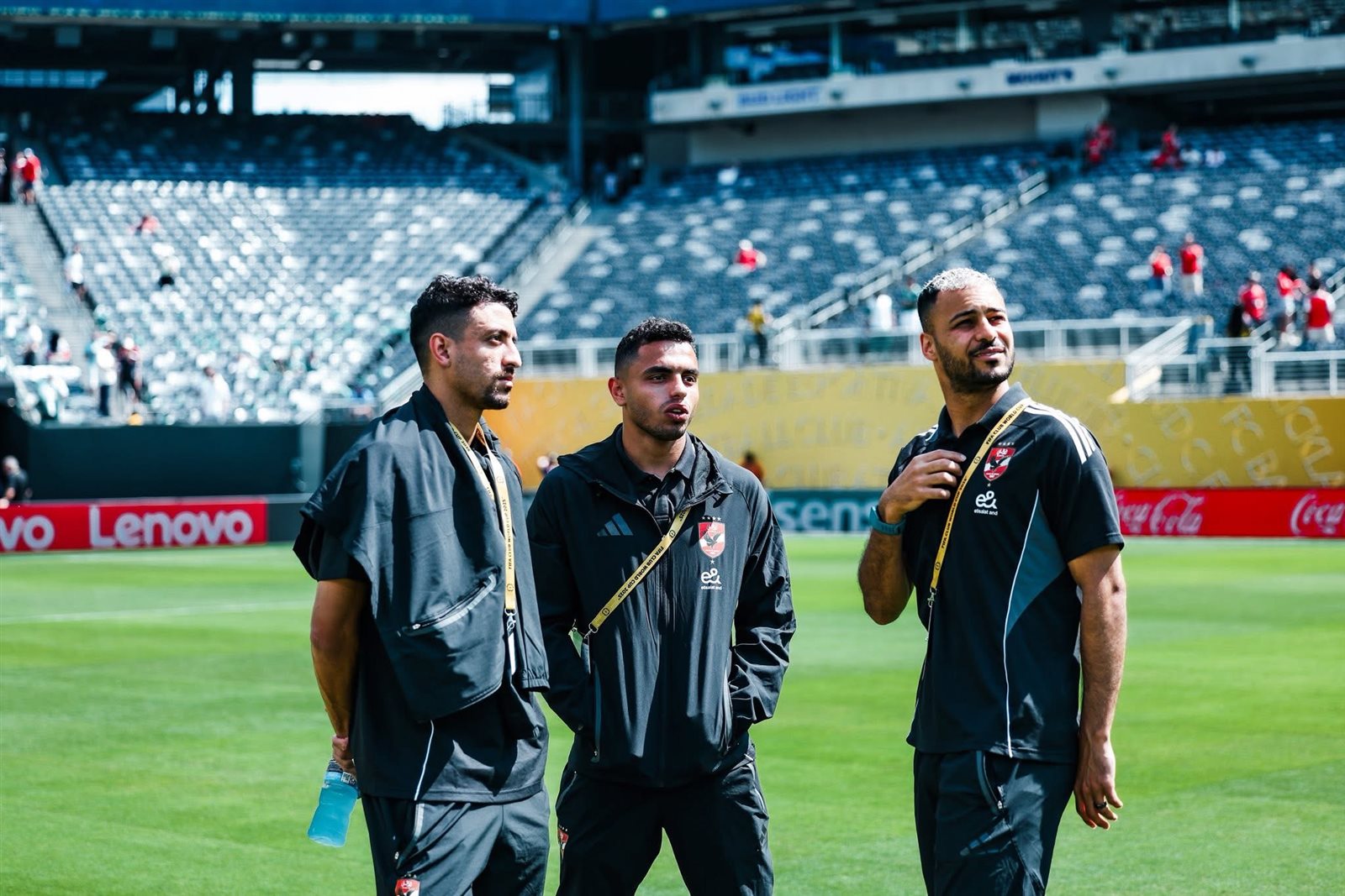 اجري لاعبو الفريق الأول لكرة القدم بالنادي الأهلي عمليات الإحماء استعدادا لمواجهة بالميراس البرازيلي في المباراة المقرر إقامتها على ملعب ميتلايف بمدينة نيوجيرسي الأمريكية.