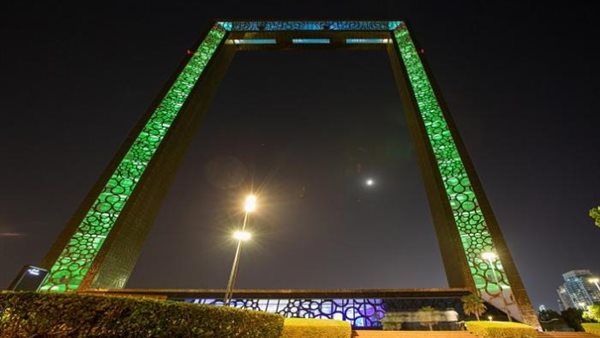 دبي تتزين بالأخضر احتفالا باليوم الوطني السعودي