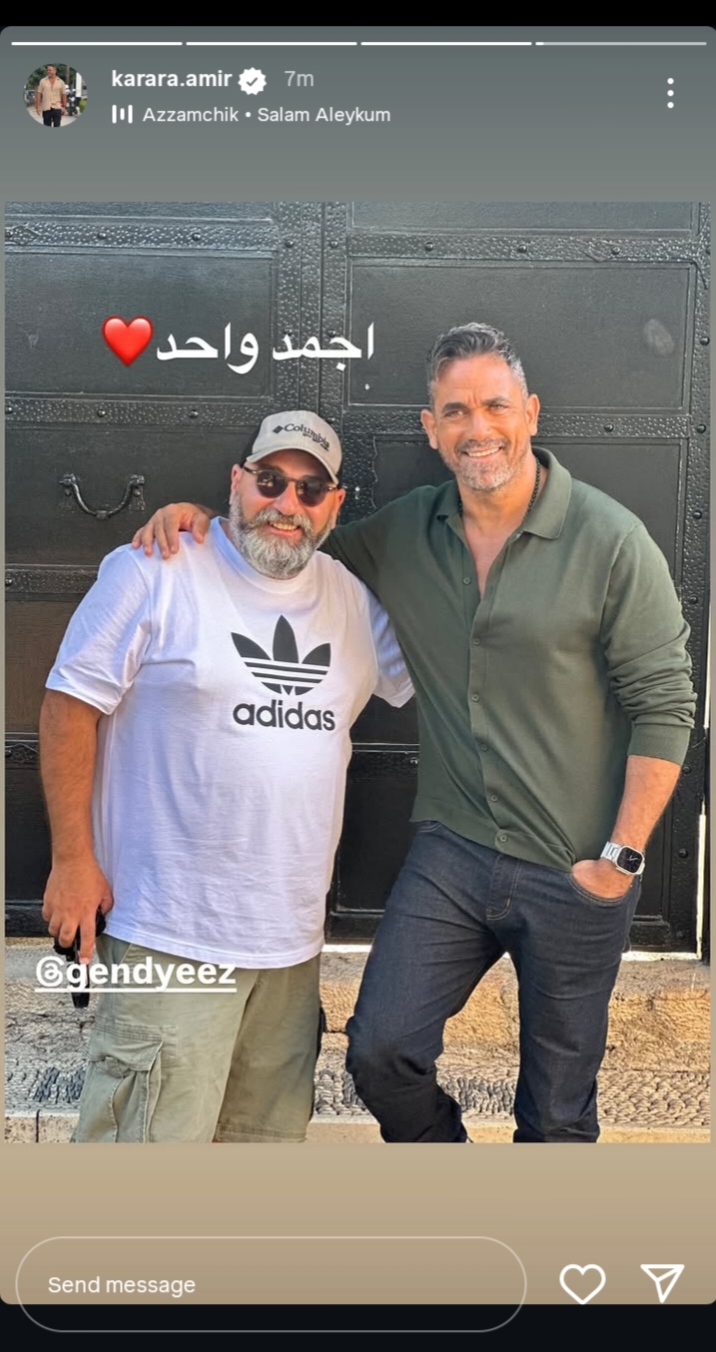 كما علق على صورة تجمعه بمخرج العمل أحمد الجندي، وكتب:" أجمد واحد".
