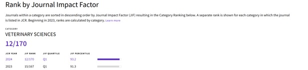 وأشار رئيس الجامعة إلى أن المجلة الدولية لكلية الطب البيطري حققت انجازًا كبيرًا بدخولها المربع الذهبي Q1 بنسبة بلغت 91.3% في قاعدة Clarivate، وبنسبة 89% في قاعدة Scopus، محتلة المرتبة 12 من بين 170 مجلة في مجال العلوم البيطرية في Clarivate، والمرتبة 22 من بين 200 مجلة في Scopus، مع ارتفاع معامل التأثير من 2.8 (عام 2024) إلى 3.2 (عام 2025)، وهو ما يعكس تصاعد مكانة المجلة إقليميًا ودوليًا.