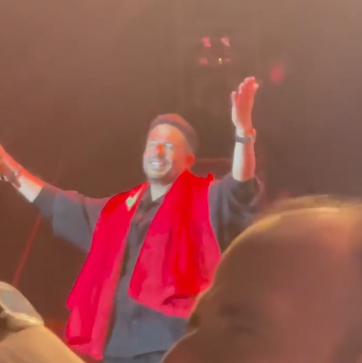 كما فاجأ أحد معجبينه بإهداءه باقة من الورود على المسرح، مشير لاعجابهم وحبهم به، كما عبر حماقي عن حبه وامتنانه وتقديره لجمهوره.