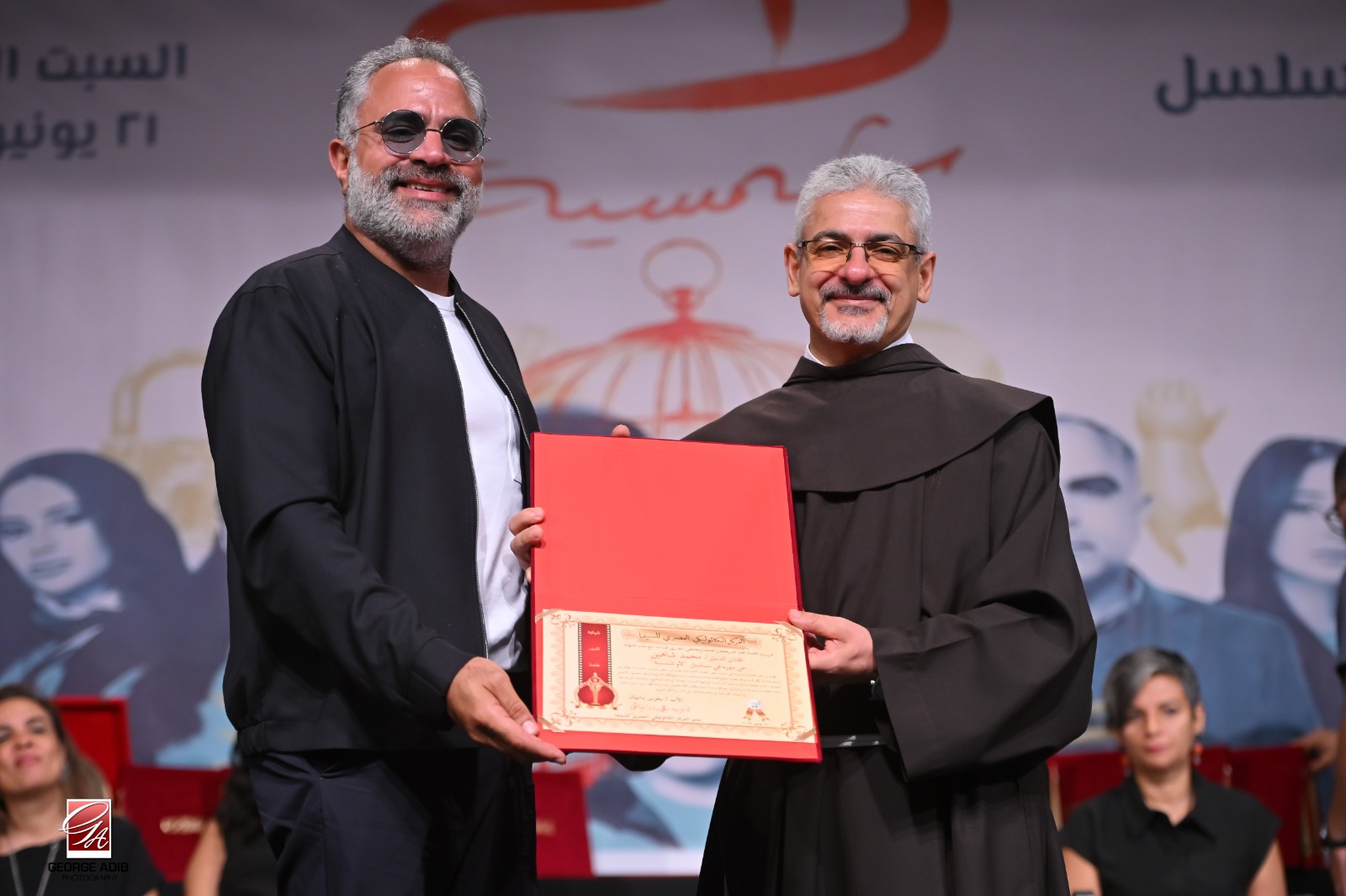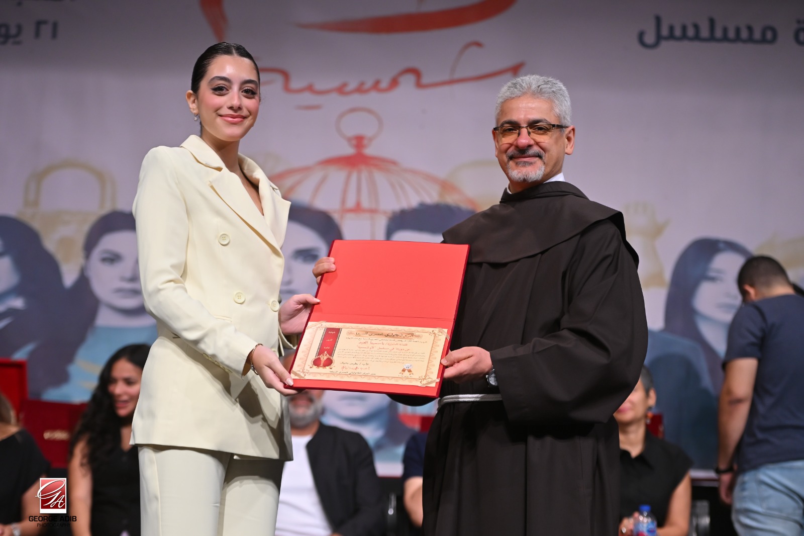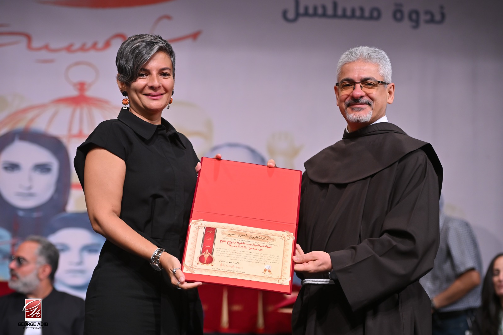 وفي ختام الندوة قام الأب بطرس دانيال بتوزيع شهادات تقدير خاصة لجميع صُناع وأبطال المسلسل، وإهداء درع المركز لهم تقديراً وعرفاناً لرسالتهم السامية، وقد تسلّمه محمد سري بالنيابة عن منتج المسلسل محمد السعدي والذي اعتذر عن الحضور لظروف سفره.