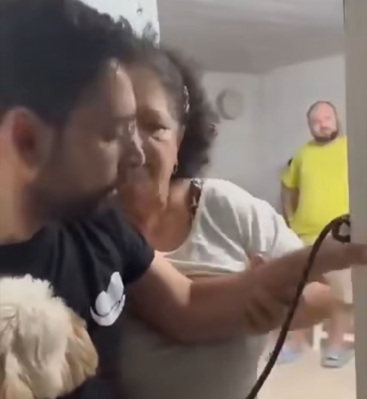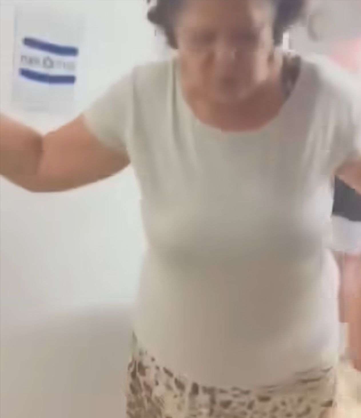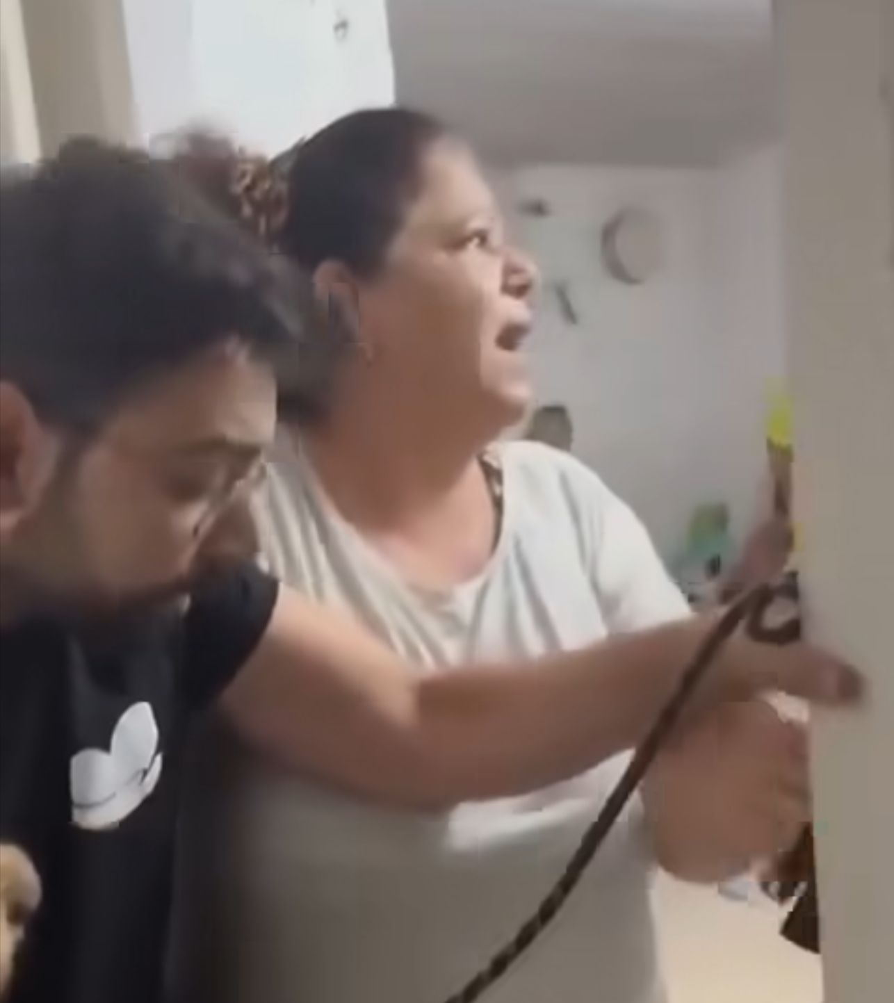 وجاء فى الفيديو محاولة الإسرائيلي الدخول معها للملجأ إلا أن السيدة الإسرائيلية رفضت بقوة وقامت بدفعه هو الكلب الخاص به بحجة إنه لا يسكن معهم فى المبنى وإنه عليه التوجه للملجأ الخاص بالمبنى التابع له.