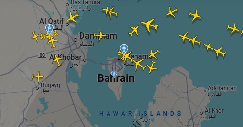 الوضع لم يختلف كثيرًا في البحرين، حيث تم رصد تباطؤ واضح في حركة الطيران بالمطار الرئيسي، بالتزامن مع استهدافها أيضًا بصواريخ إيرانية، في ردّ على الهجوم الأمريكي الذي طال مفاعل "فوردو" النووي الإيراني.