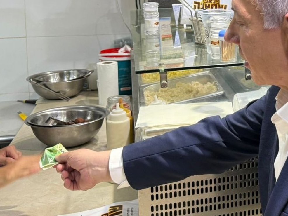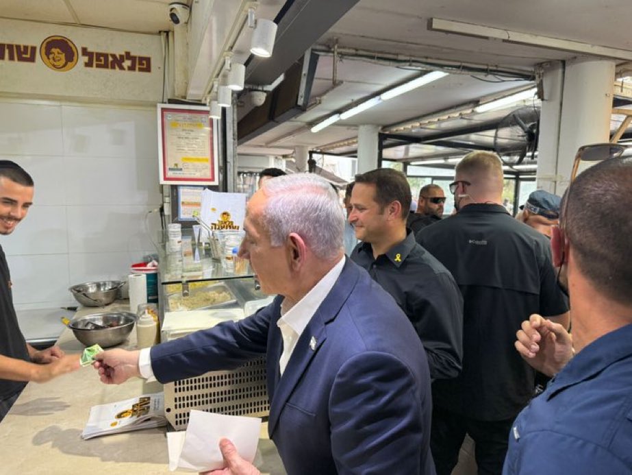 ضجت مواقع التواصل الاجتماعي، بصور لرئيس الوزراء الإسرائيلي بنيامين نتنياهو ، وهو يشتري لنفسه فلافل ويسلم البائع ورقة نقدية من فئة 50 شيكلًا.