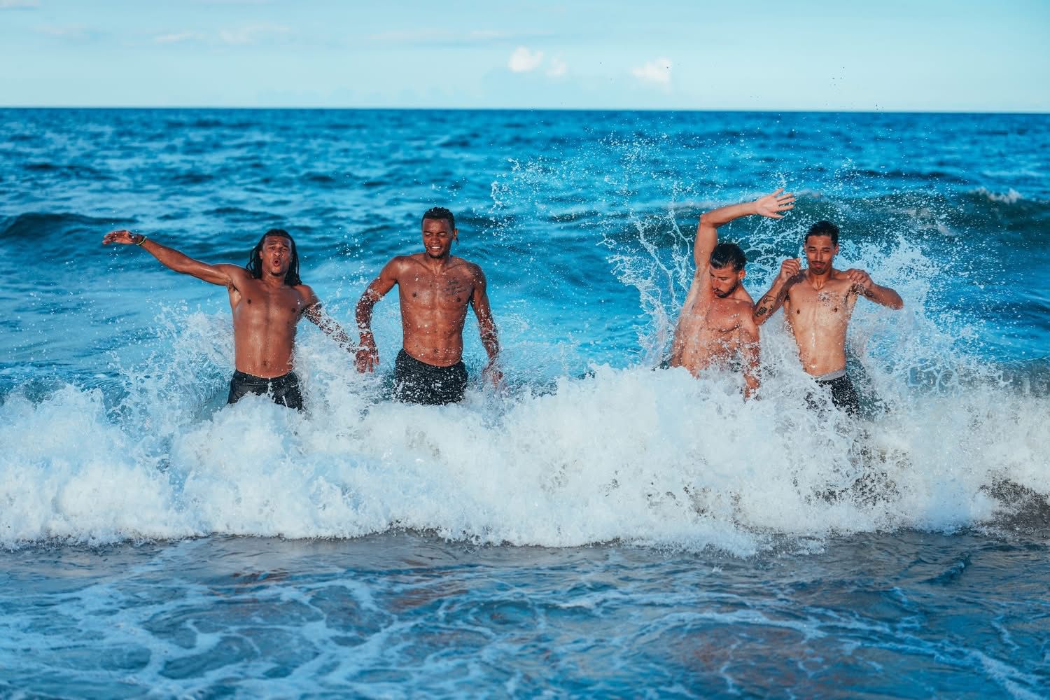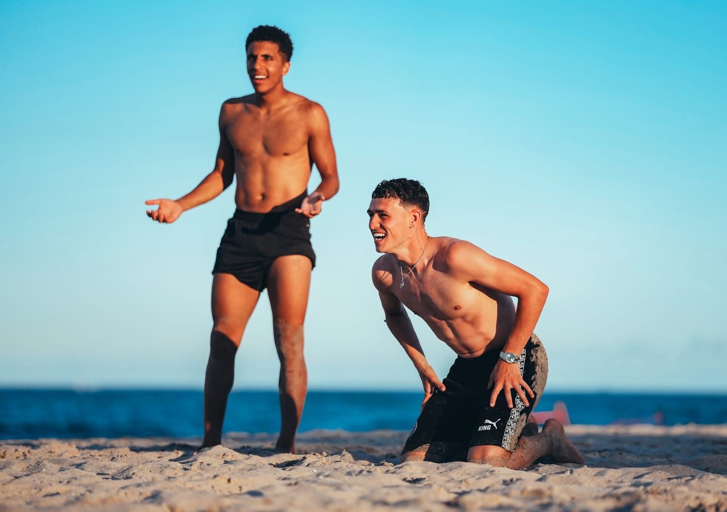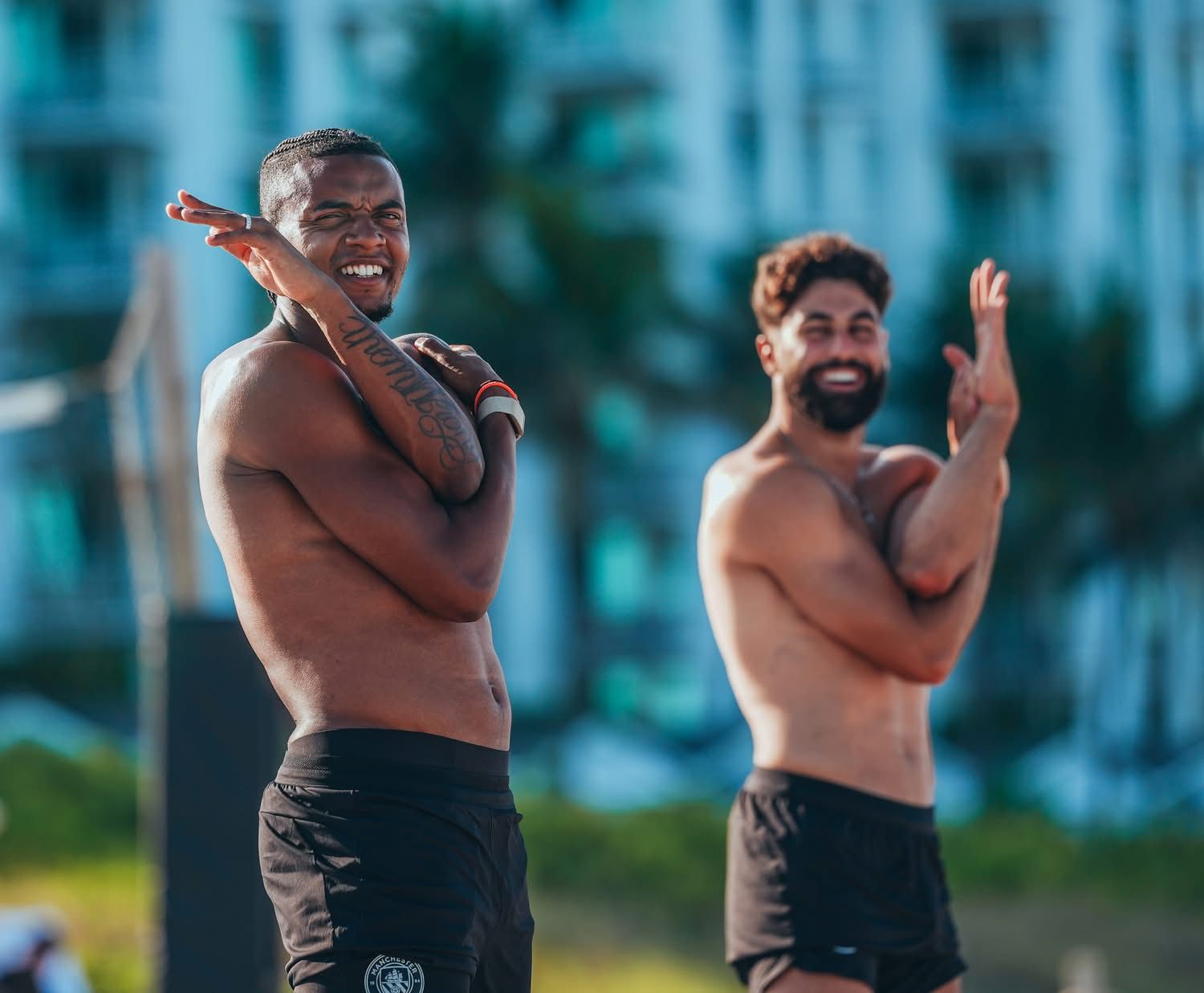 مانشستر سيتي يجري تدريبات ترفيهية على شواطئ أمريكا