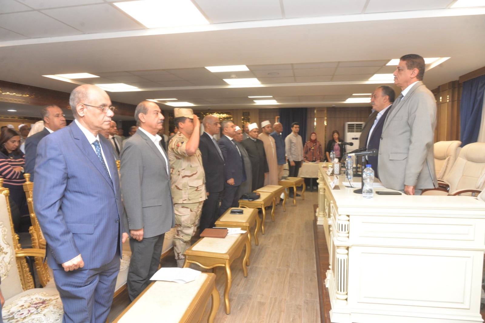 وحضر الاجتماع الدكتور مينا عماد نائب المحافظ، والمحاسب عدلي مصلح أبو عقيل السكرتير العام، وخالد عبد الرؤوف السكرتير العام المساعد، واللواء إسماعيل حسين مستشار المحافظ لشئون الإدارة العامة للمكتب الفني، والمستشار محمد محمود كامل المستشار القانوني للمحافظة، بالإضافة إلى المقدم محمد همام نائبا عن المستشار العسكري للمحافظة، ومديري المديريات الخدمية، ورؤساء المراكز والأحياء، ومديري إدارات الديوان العام وشركات المرافق.
