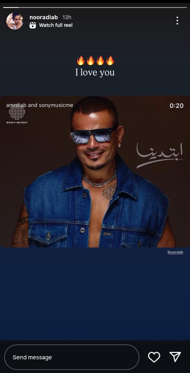 وشاركت نور عمرو دياب صورة لـ والدها من خلال حسابها الرسمي عبر موقع تبادل الصور والفيديوهات القصيرة “إنستجرام”، عبر خاصية استوري، وكتبت: “أنا بحبك”.