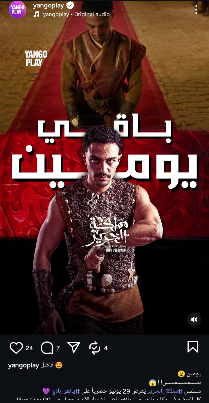 "فاضل يومين".. يانجو بلاي تروج لـ مسلسل"مملكة الحرير" قبل طرحه