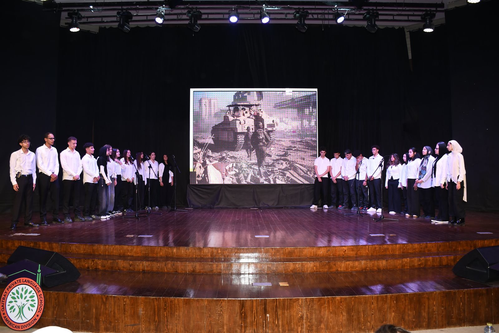 وشهد الحفل ايضا استعراض صامت عن مخاطر الاستخدام السئ للانترنت ، وبعدها قامت نوران احمد بتقديم فقرة أغنية فرنسية بعنوان "رقصة اخيرة" ، ثم قدم الطلاب الاغنية الشهيرة "سلمى يا سلامة" للنجمة المصرية العالمية داليدا باللغتين العربية والفرنسية التي شهدت تفاعل كبير من الحاضرين ، كما تم تقديم أغنية عن تقسيم العالم والحروب بعنوان "هم قسموا العالم" ، تناولت تقسيم العالم والحروب في منطقة الشرق الأوسط وأفريقيا والعدوان الاسرائيلي على غزة .
