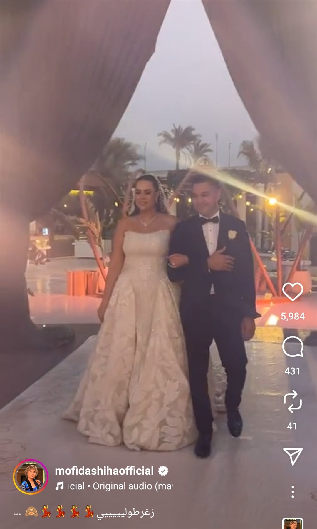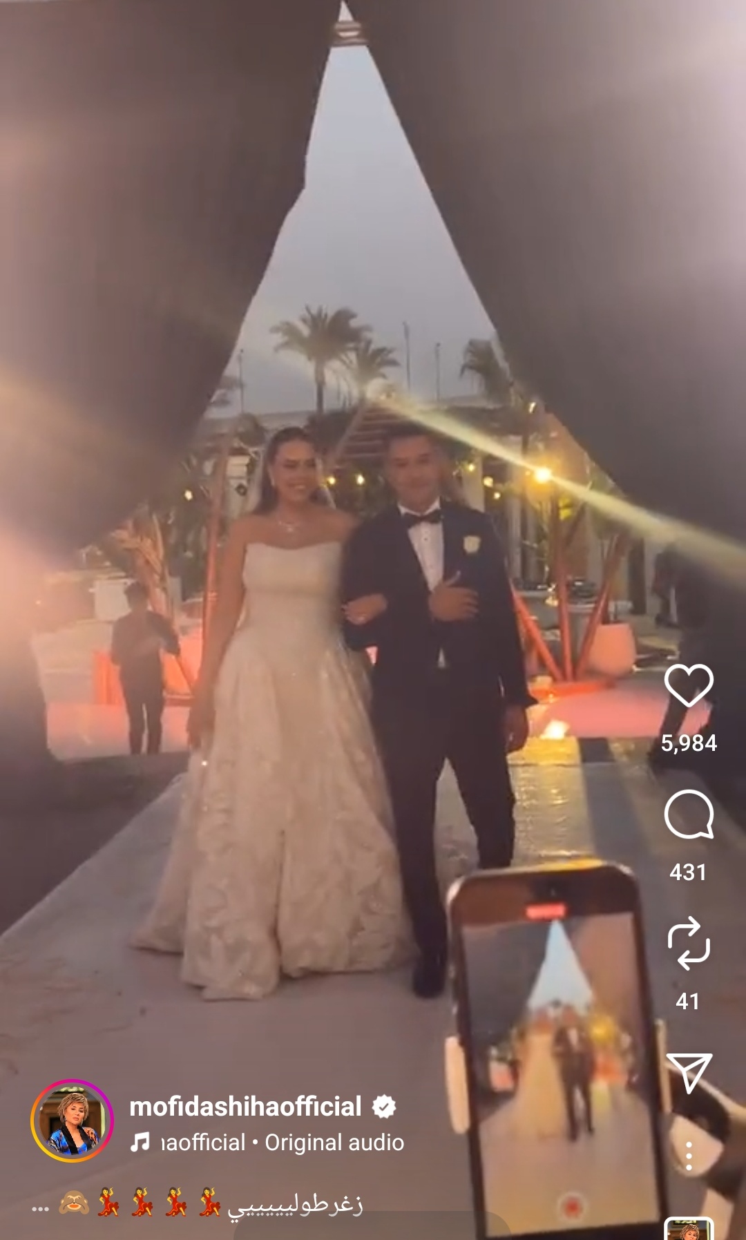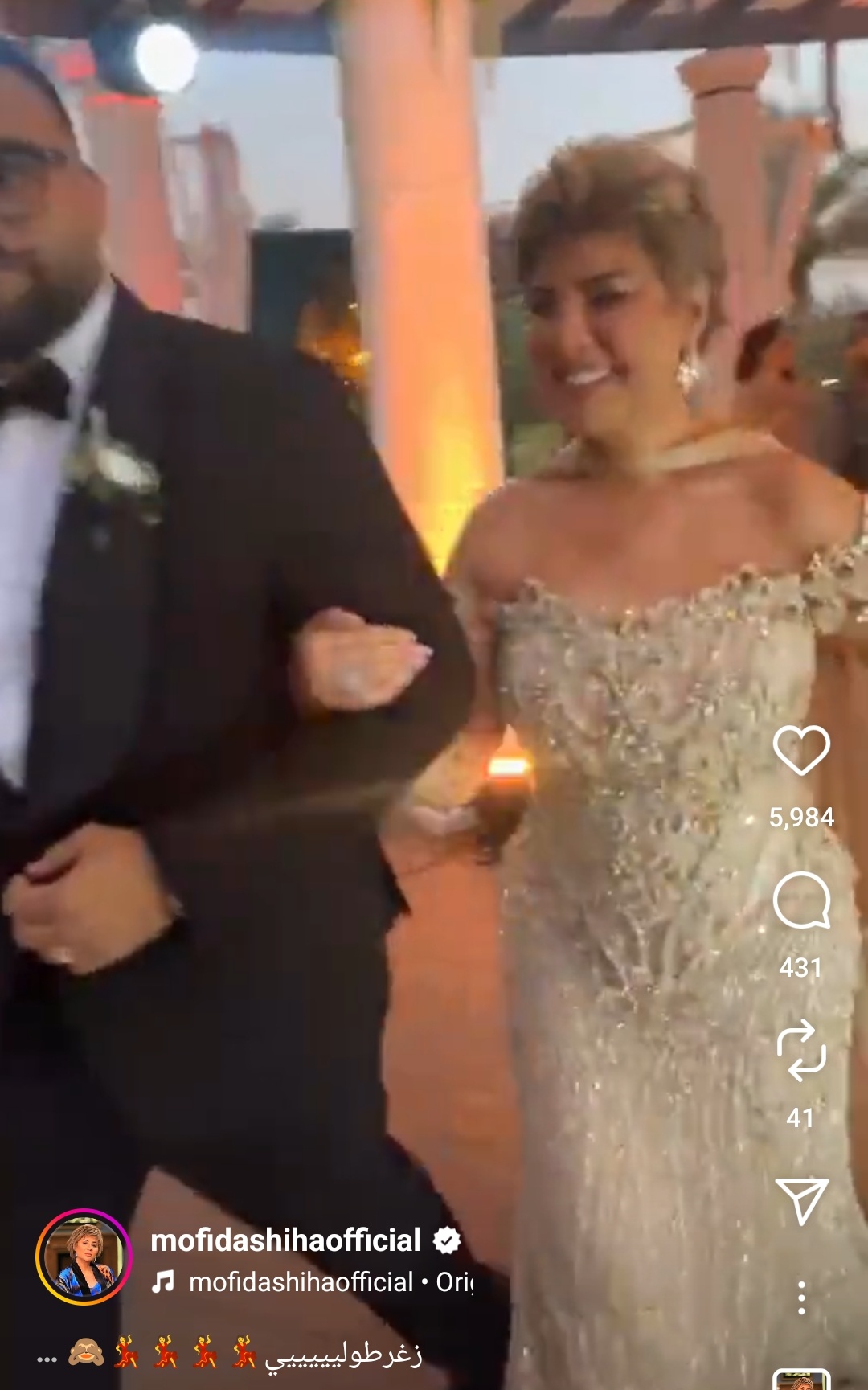 شاركت الإعلامية مفيدة شيحة فيديو من حفل زفاف نجلتها منه، وذلك بحضور دعاء فاروق ولمياء فهمي.