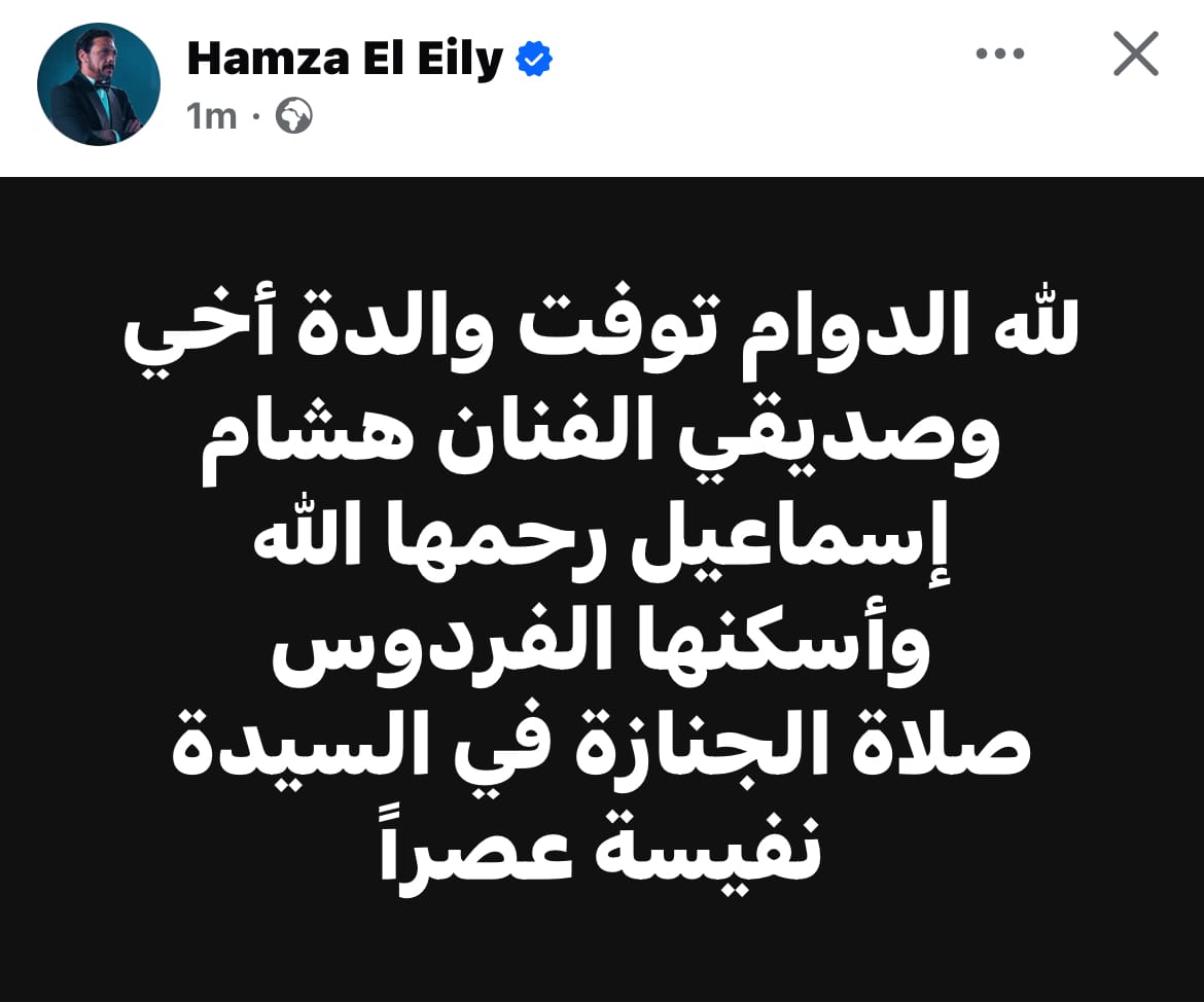 حمزة العيلي ينعي الفنان هشام إسماعيل في وفاة والدته ويكشف موعد صلاة الجنازة