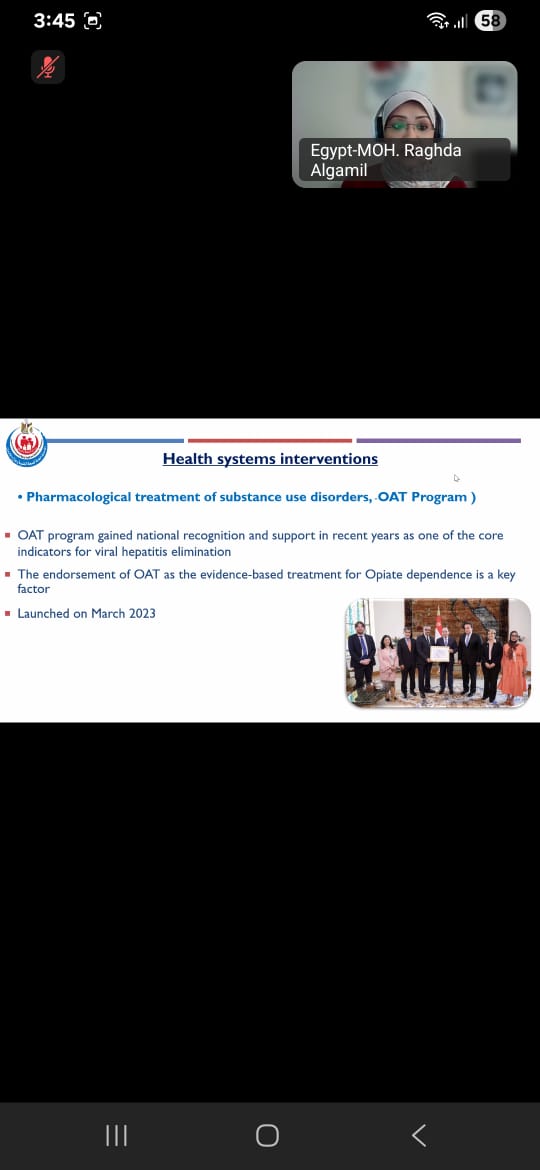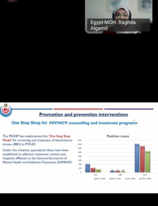 من جانبها، شددت الدكتورة راغدة الجميل، مدير إدارة علاج الإدمان، على أن هذه المشاركة تعكس التزام وزارة الصحة والسكان والأمانة العامة للصحة النفسية وعلاج الإدمان بالتعاون الدولي والإقليمي في مواجهة تحديات الإدمان، وحرصها على تبادل الخبرات والاستفادة من أفضل الممارسات العالمية لتطوير منظومة الصحة النفسية وعلاج الإدمان في مصر، بما يتسق مع أهداف التنمية المستدامة ورؤية مصر 2030.