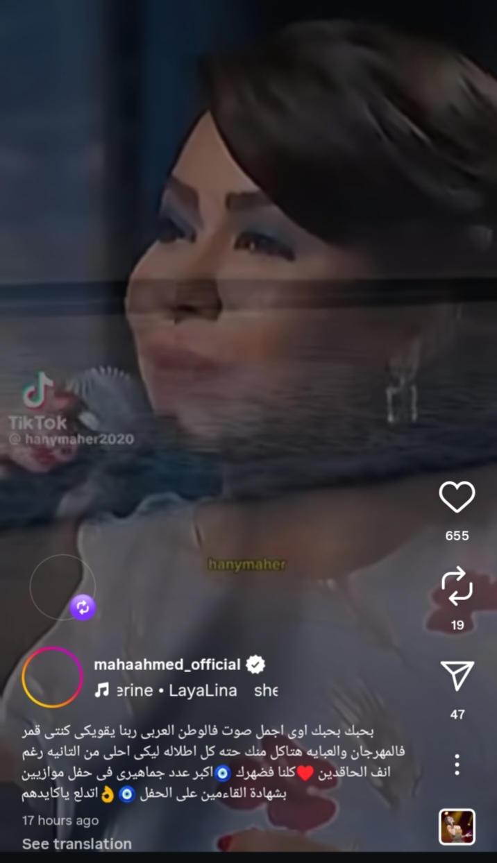 وكتبت مها أحمد من خلال حسابها الرسمي عبر موقع تبادل الصور والفديوهات القصيرة إنستجرام، قالت: "بحبك بحبك اوي أجمل صوت فالوطن العربي، ربنا يقويكي، كنتي قمر فالمهرجان، والعباية هتاكل منك حتة، كل إطلالة ليكي احلى من التانية رغم انف الحاقدين، كلنا فضهرك.. اكبر عدد جماهيري في حفل موازين، بشهادة القائمين على الحفل، ادلع يا كايداهم".
