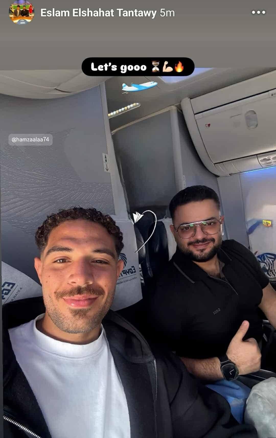 ونشر حمزة صورة عبر حسابه الرسمي على "إنستجرام"، أثناء تواجده داخل الطائرة، في طريقه للانضمام إلى أحد أندية أوروبا، دون الإفصاح عن اسم النادي حتى الآن.