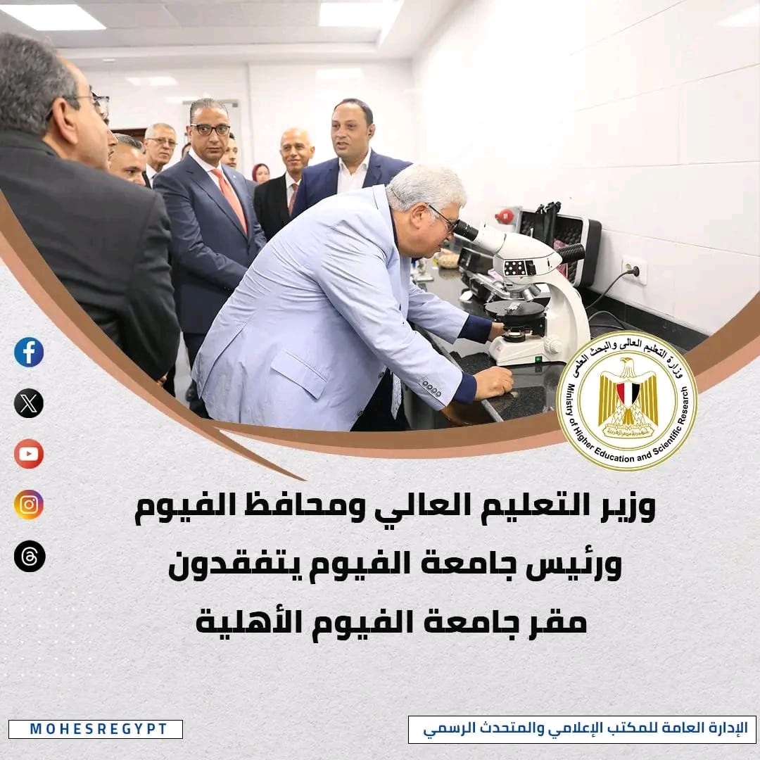 وعلى هامش الزيارة، عقد الوزير اجتماعًا موسعًا مع رؤساء الجامعات الحكومية المنشأ منها جامعات أهلية (وعددها 12 جامعة لم تبدأ الدراسة بعد)، وذلك بمقر جامعة الفيوم الأهلية، حيث أكد على أهمية هذه الجامعات باعتبارها رافدًا أساسيًا في منظومة التعليم العالي، يسهم في استيعاب الإقبال المتزايد على التعليم الجامعي. كما شدد على أهمية تقديم تعليم أكاديمي متميز يعتمد على برامج بينية حديثة، صُممت وفق معايير دولية لتلبية احتياجات السوق وتعزيز تنافسية الخريجين.