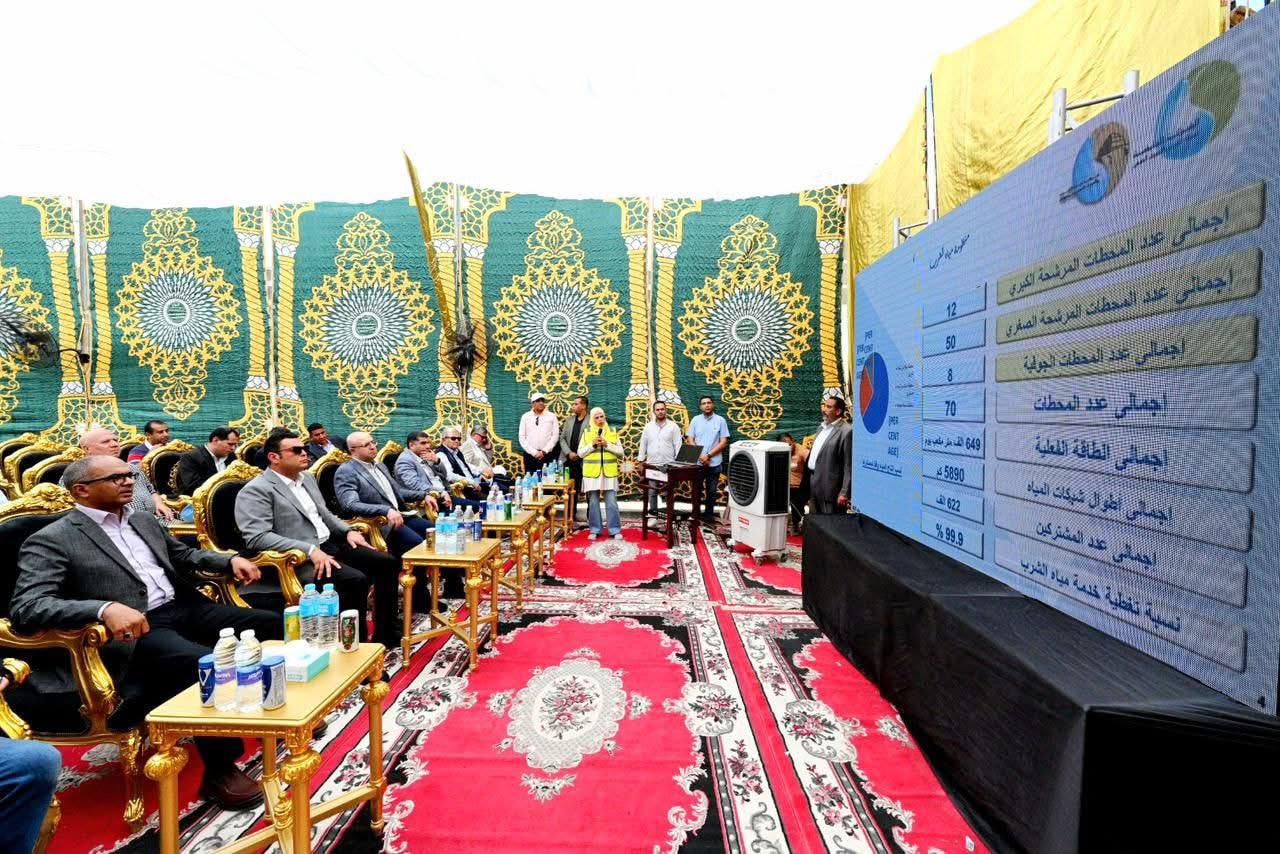 اطَّلع وزير الإسكان، ومحافظ بني سويف، على سير العمل بمنظومة مياه الشرب بالمحافظة، والتي تتكون من 70 محطة مياه شرب متنوعة بطاقة فعلية 649 ألف م3/يوم، لخدمة نحو 622 ألف مشترك، من خلال شبكات مياه بطول 5890 كم، وخطوط نقل مياه ومآخذ مياه عكرة وغير ذلك من مكونات المنظومة، كما تم استعراض سير العمل بمنظومة الصرف الصحي بالمحافظة، والتي تتكون من 113 محطة صرف صحي متنوعة "معالجة وروافع" بطاقة فعلية 240 ألف م3/يوم، وشبكات وخطوط انحدار بطول حوالي 1160كم، وغير ذلك.