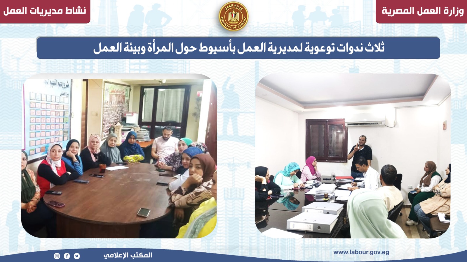 1ـ مديرية عمل أسيوط :3 ندوات توعوية عن "المرأة وبيئة العمل"